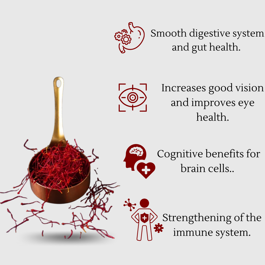 Pure Heaven Kashmiri Saffron isn't just a culinary delight; it's a natural health booster too! Packed with potent antioxidants, saffron helps combat oxidative stress, promoting a stronger immune system. Additionally, it contains nutrients like vitamin B12, manganese, and iron, all vital for overall well-being. Its anti-inflammatory properties may aid in relieving mild pains and soothing digestive discomfort. Infuse your dishes with the goodness of saffron while nurturing your body from the inside out.
